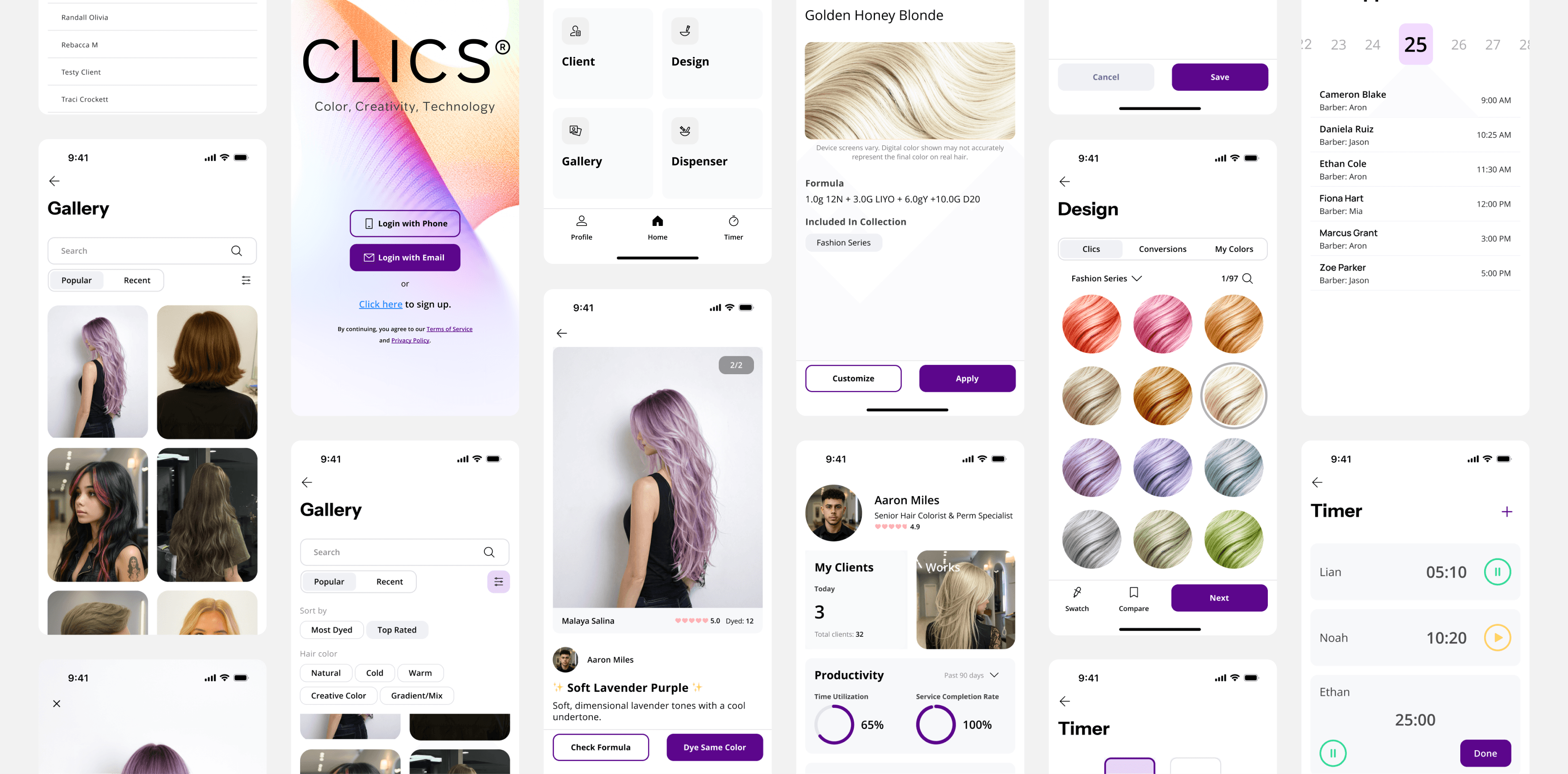Stylists rely on external clocks to track dyeing time, forcing them to switch between the salon app and the system clock. With multiple clients, it’s hard to match timers to the right customer.